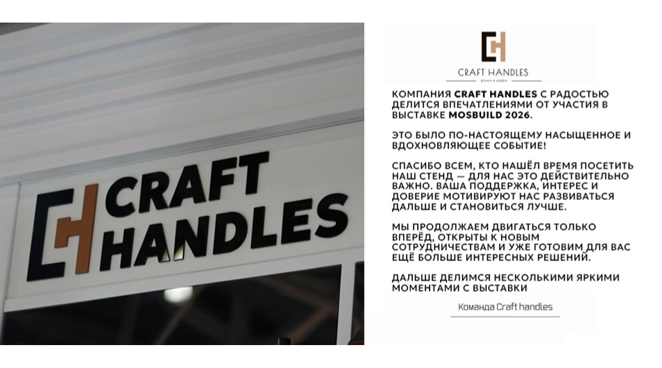 Не первый год сотрудничаем с фирмой Craft handles и можем с уверенностью сказать, что качество продукции на высоте! Уже многие из наших клиентов остались довольными результатом нашей совместной работы. Очень важно, что у ребят большой выбор моделей, что позволяет подобрать именно те ручки, которые подходят под конктретный проект. Кроме того, ценим быструю отправку и качественную упаковку товара. Определённо рекомендуем данную компанию всем, кто ищет качественные ручки-скобы по доступной цене!