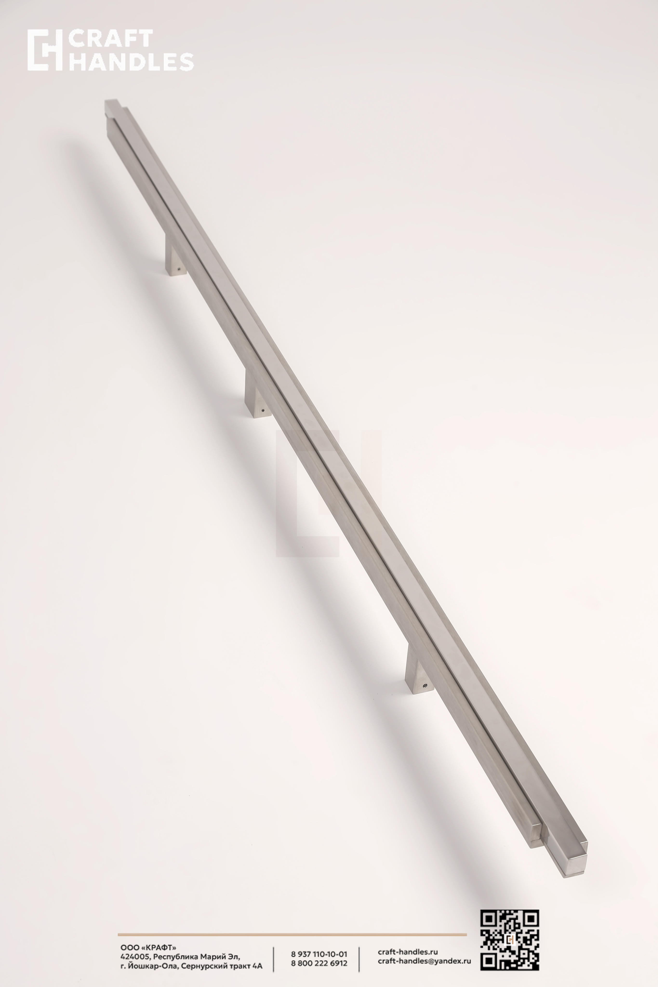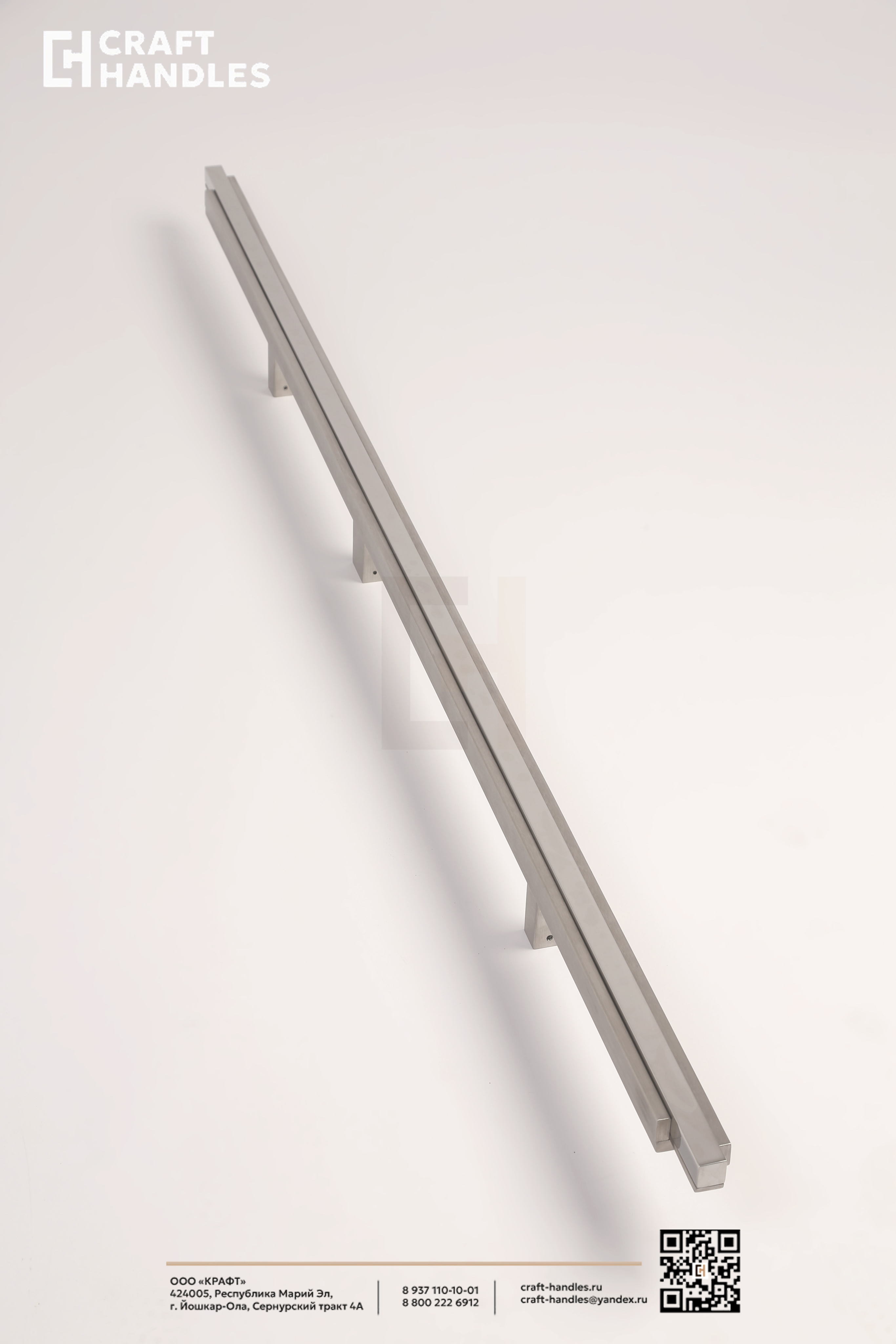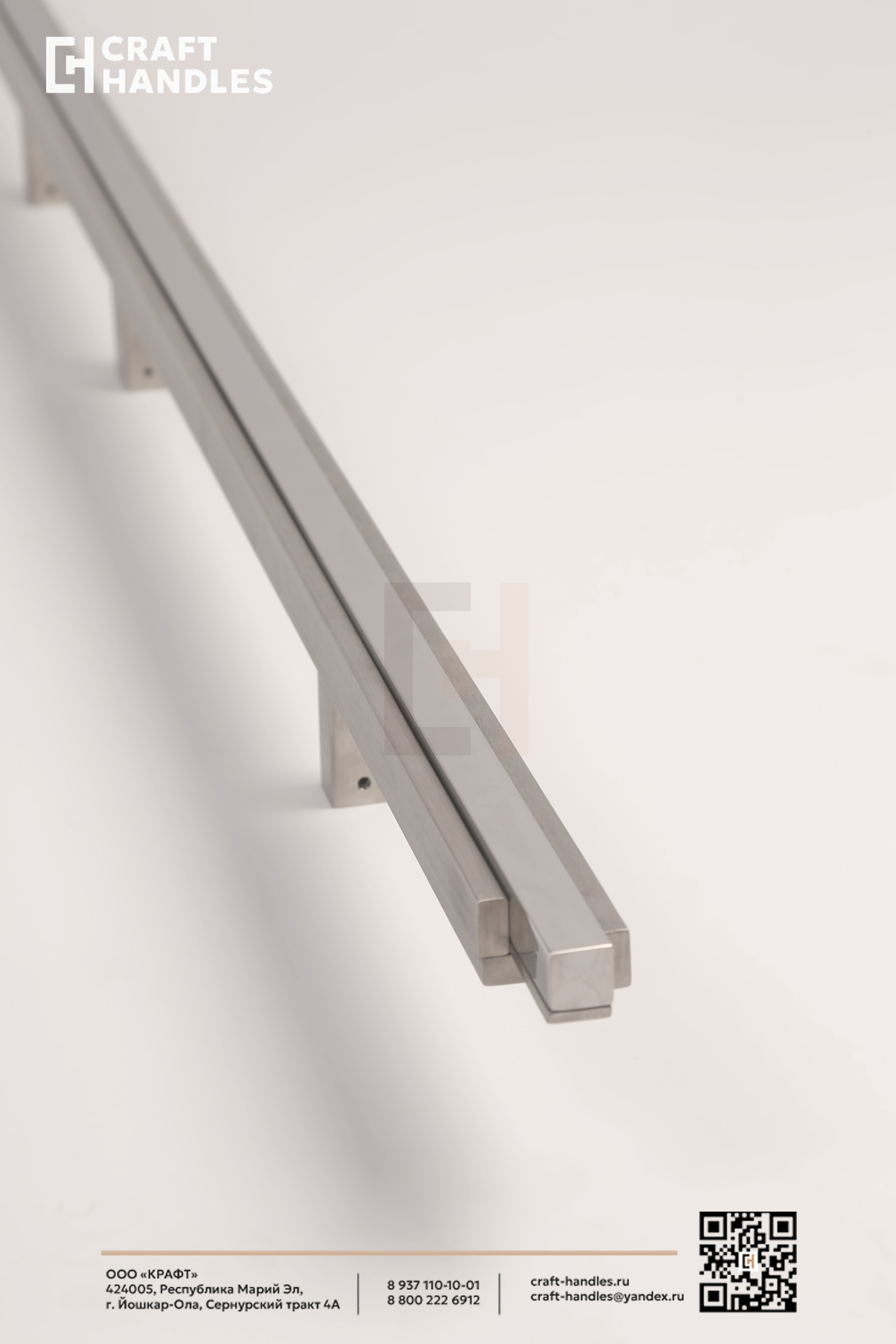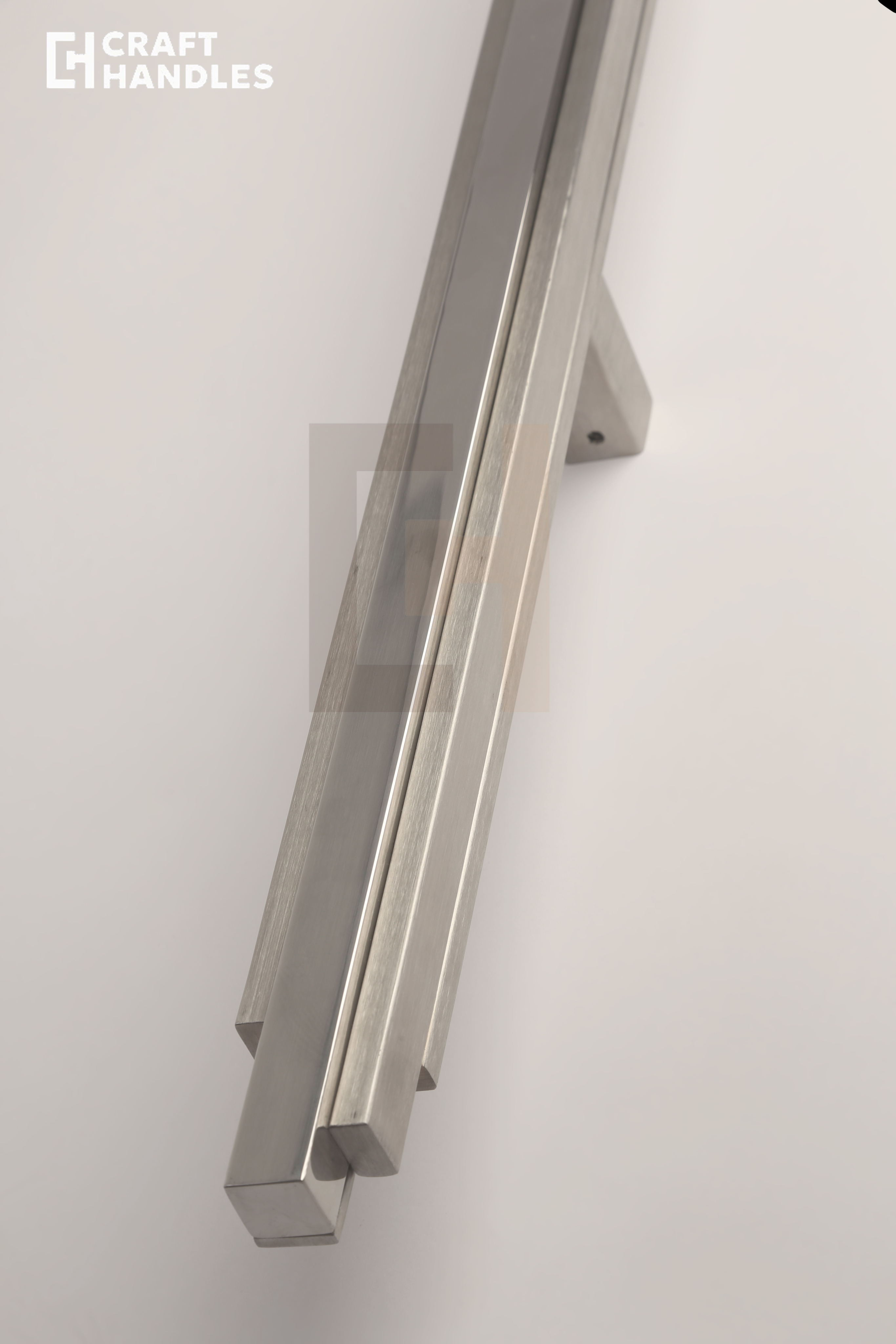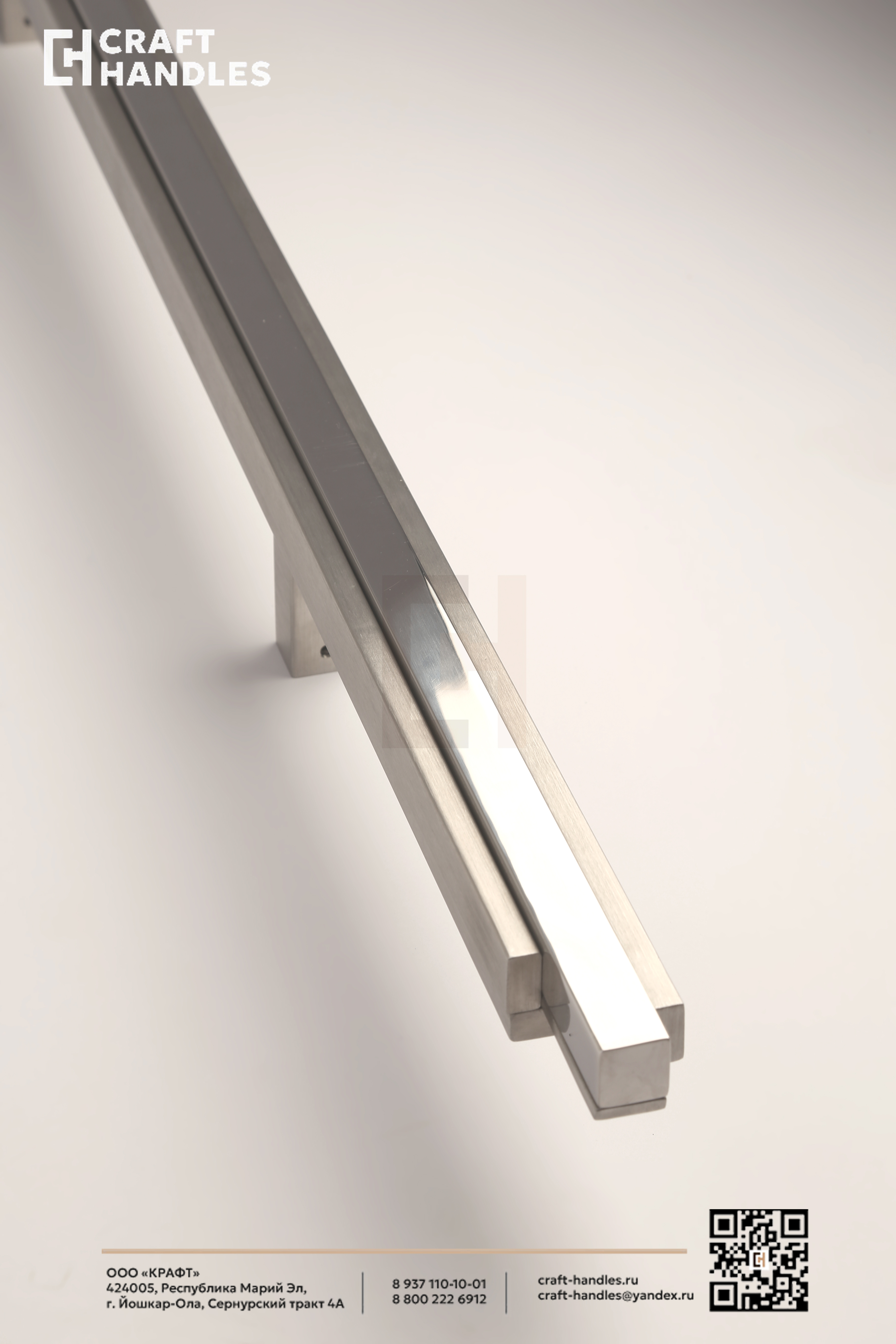Ручка Obelisk — это экстерьерная ручка-скоба из нержавеющей стали, решённая как архитектурный объект. Её форма строится на композиции из вертикальных профилей с различной обработкой поверхности: центральный элемент выполнен с зеркальной полировкой, создающей чёткую световую линию, а фланкирующие его плоскости имеют мягкое сатинированное покрытие. Все элементы сохраняют строгую параллельность и точные зазоры по всей высоте и все вертикали собраны в единую уравновешенную форму.