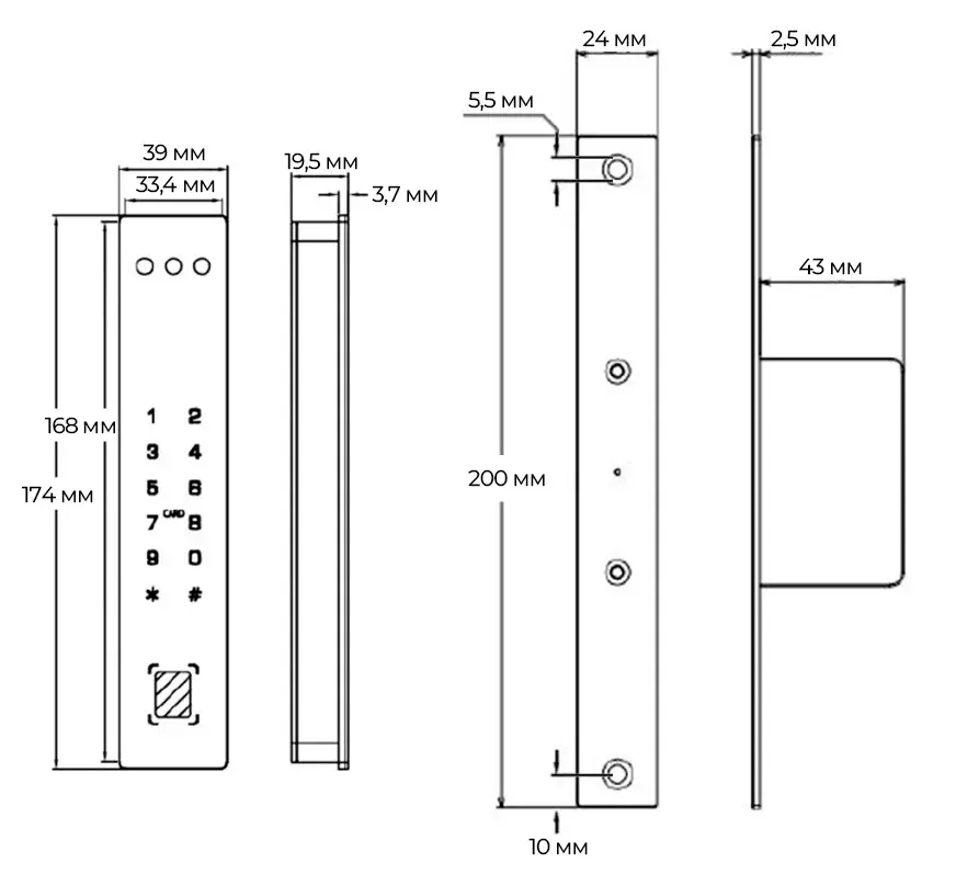 - 7 способов открытия: лицо, палец, ПИН-код, RFID-карта, пульт, приложение, механический ключ.