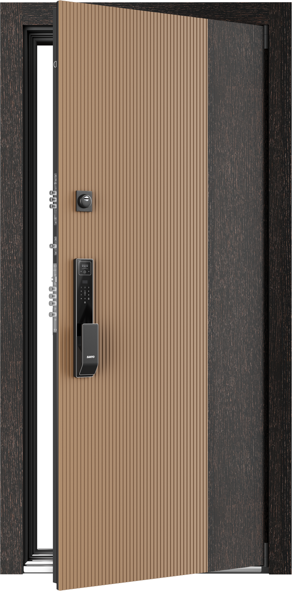 ELBRUS COMFORT SMART cовременная входная дверь с электронным биометрическим замком. Сочетает стильный дизайн с высокой безопасностью: открывается по отпечатку пальца, коду, RFID-карте или с помощью ключа. Оснащена дистанционным управлением через мобильное приложение — можно отслеживать попытки открытия и управлять замком со смартфона. Усиленная конструкция (сталь 1,5 мм, толщина полотна — 80 мм), минеральная плита для шумо- и теплоизоляции, два контура уплотнения. Отделка — панели МДФ с ПВХ-покрытием. Идеальный выбор для современного дома.