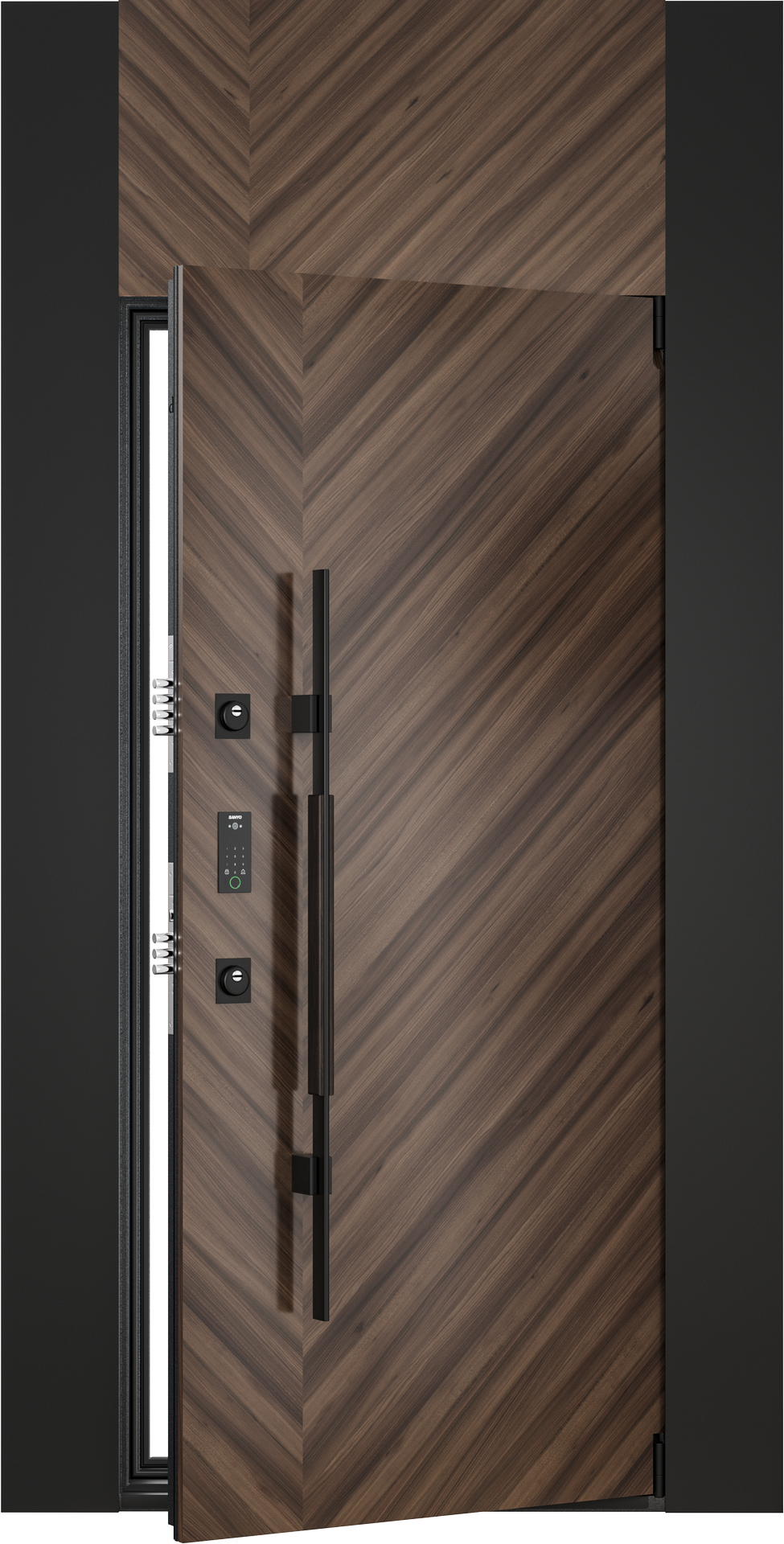 - Внимание к деталям: каждый элемент двери продуман до мелочей — от расположения фурнитуры до текстуры полотна.