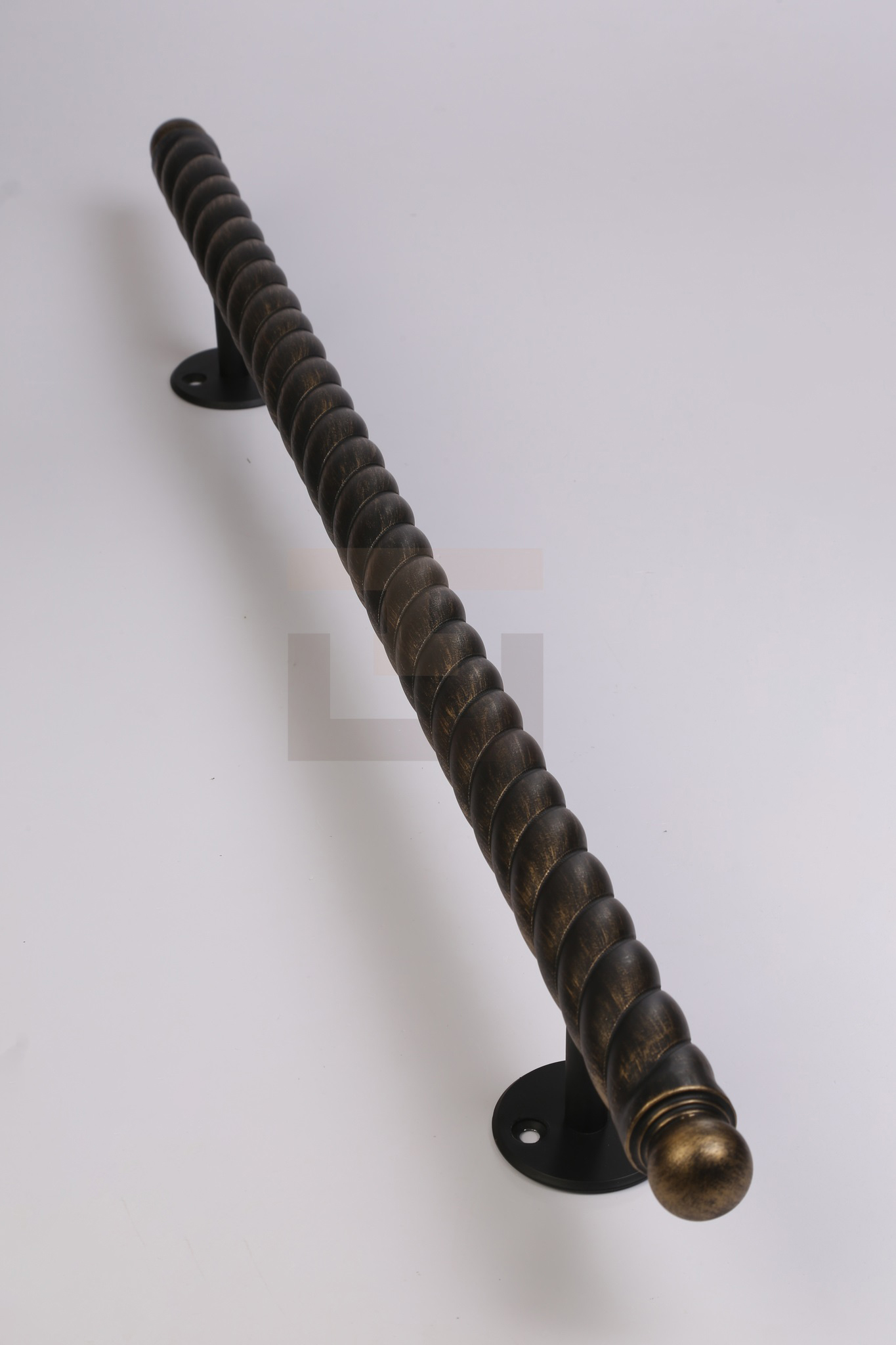 Сделана из прочной стали с использованием ковки. Длина 1000 мм, ширина 40 мм — размеры, которые делают ручку заметной и удобной для больших дверей. Она приятно тяжёлая в руке, а её витая текстура добавляет надёжный хват.