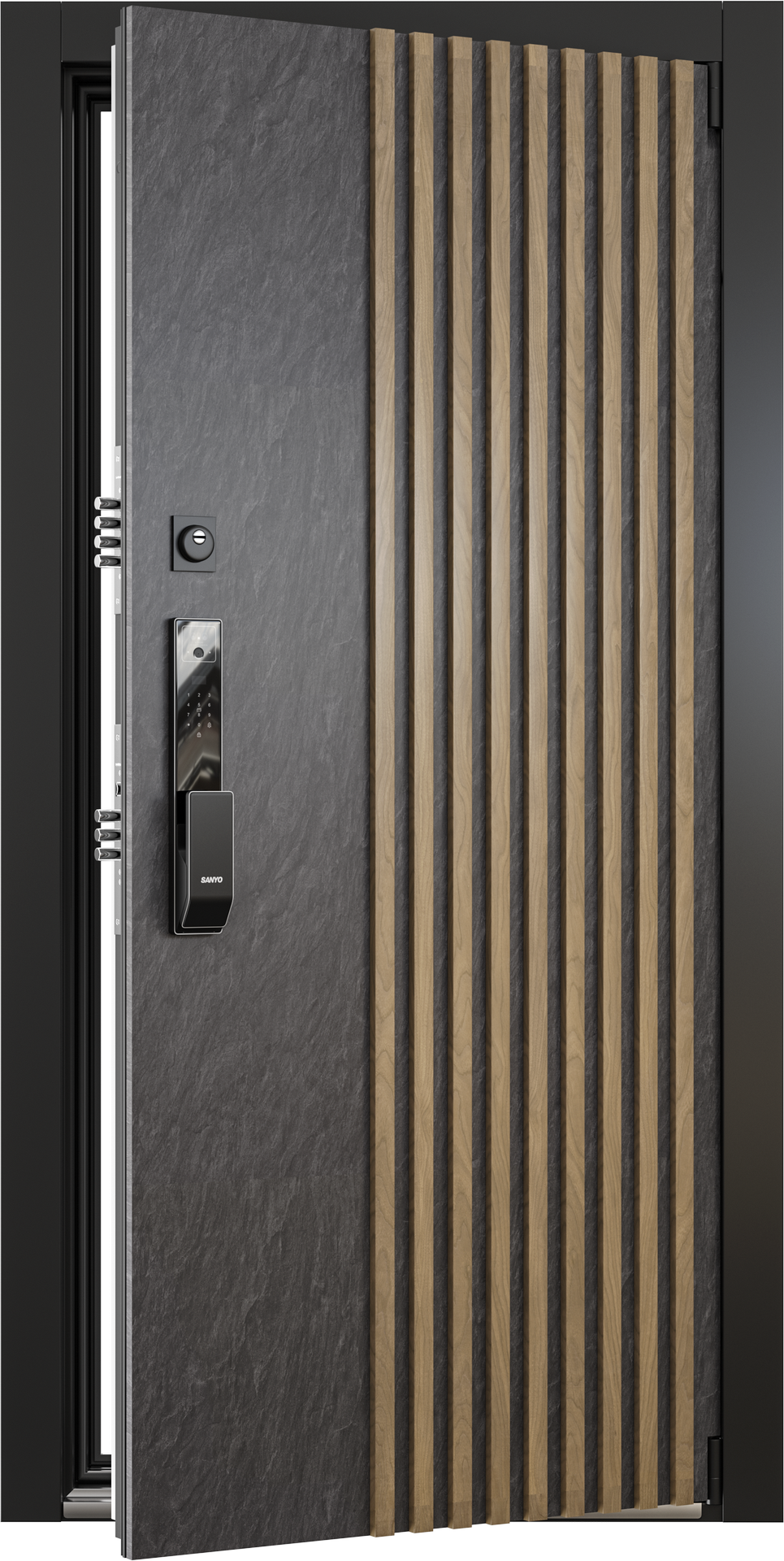 - Электронный замок Sanyo: надёжный механизм с современным дизайном, обеспечивает высокий уровень безопасности.