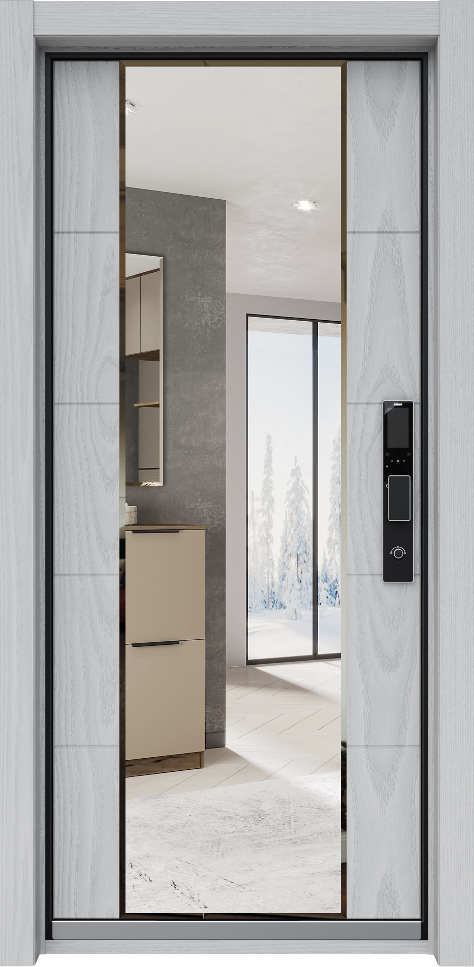 • Элитная фурнитура: Узкий профиль и матовая черная ручка подчеркивают статус.