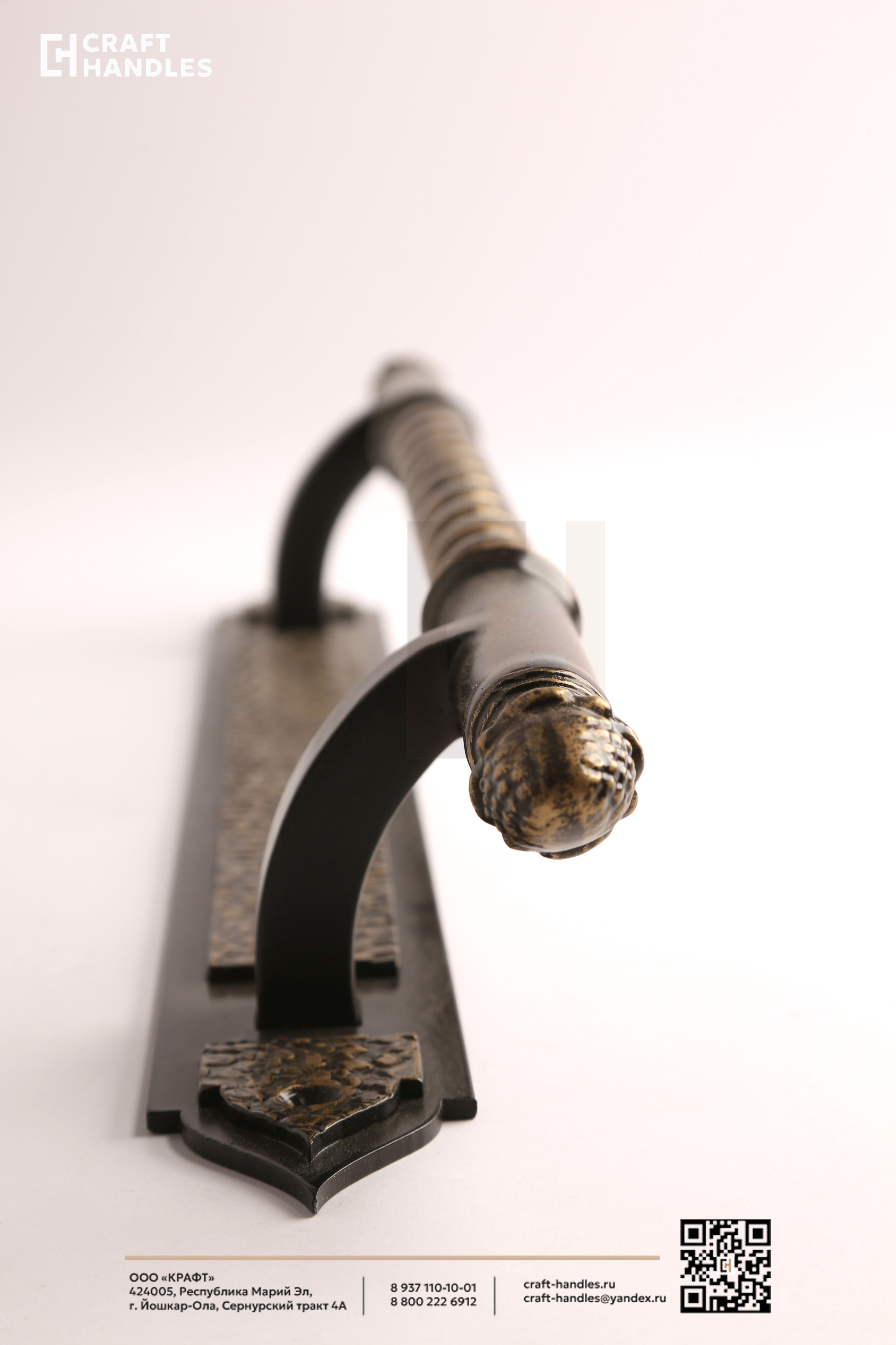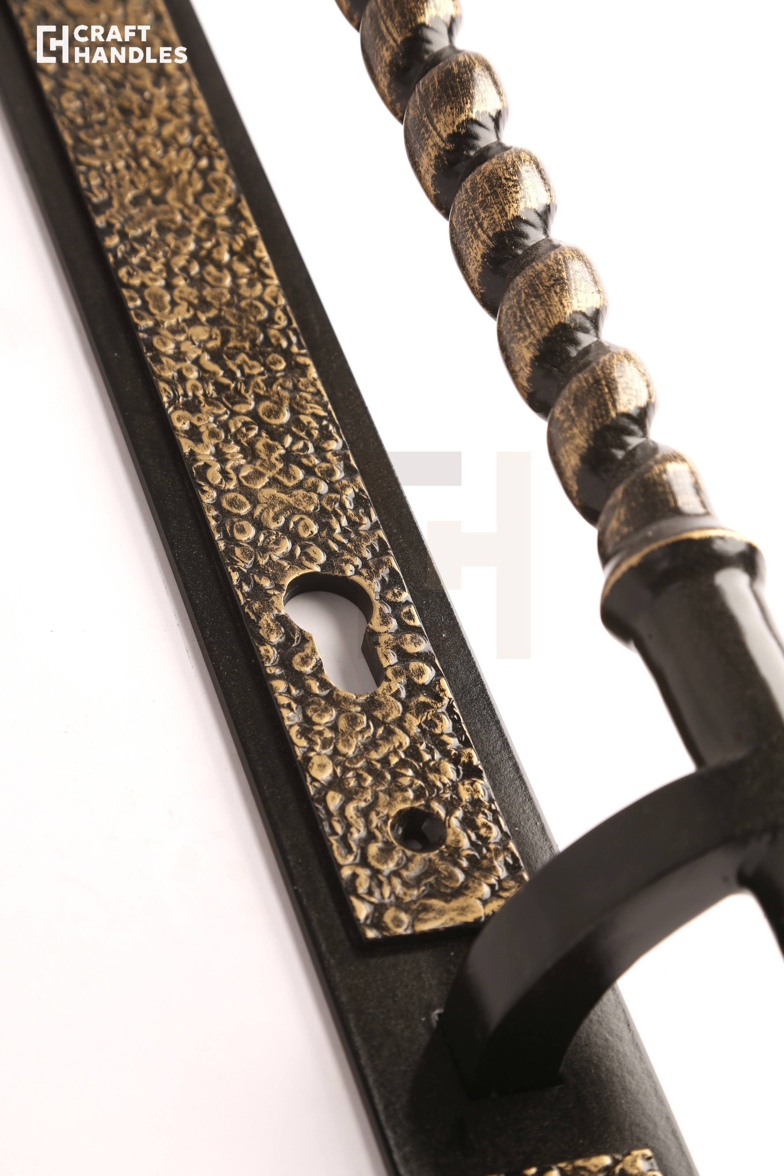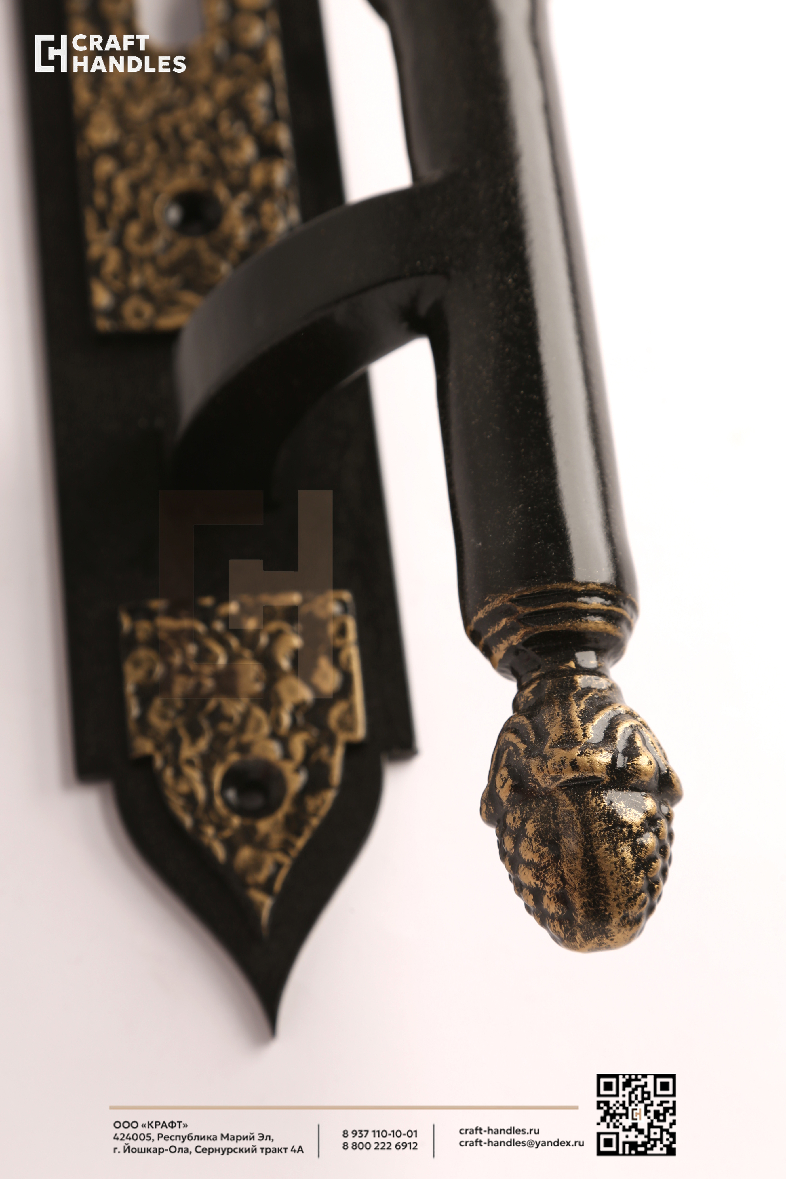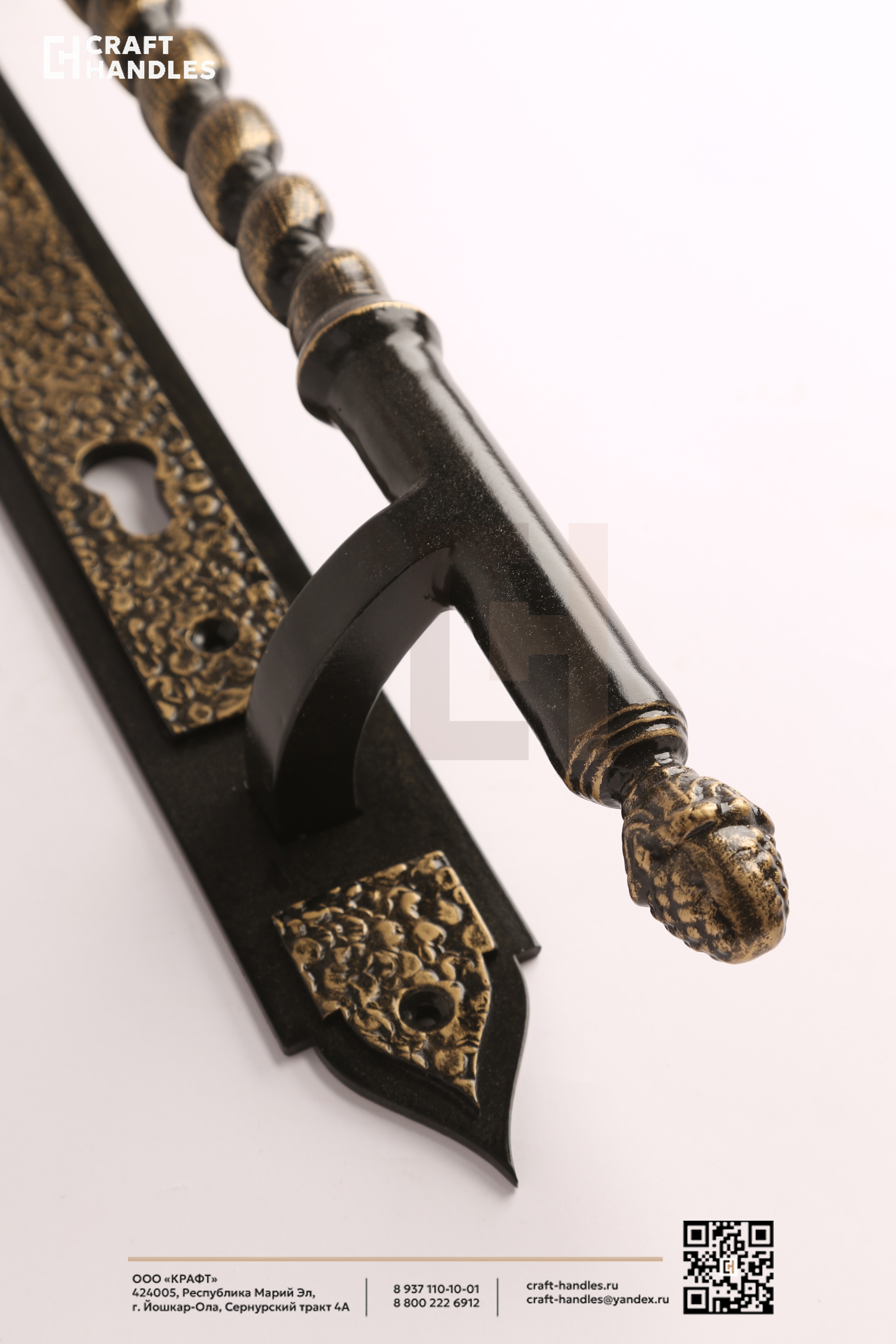 Кованая дверная ручка VERSAILLES (Версаль) — это классика дворцового стиля, выполненная настоящим мастером. Глубокий чёрный фон и благородная патинированная бронза создают дорогой, выверенный контраст, который сразу считывается как премиум. Витой стержень с бусинами закручивается в классическом ритме барокко — взгляд цепляется и не отпускает. Планка стрельчатая, с характерной кованой текстурой, которая выдаёт ручную работу. Навершие в виде классического декоративного шара завершает композицию аккуратно и солидно.